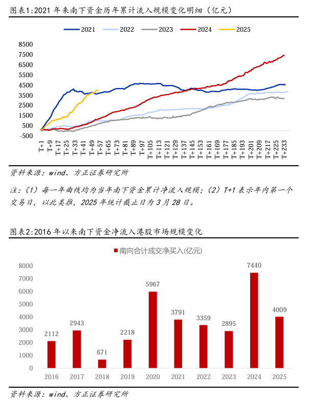 年初以来南下资金净流入港股市场节奏明显加速,截至3月28日,南下资金净流入港股市场规模达4009亿元,无论是净流入的规模以及持续性都远超前几年同期水平。
