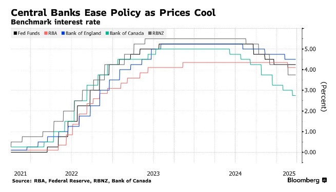 最新数据显示,澳大利亚2月就业岗位减少逾5万个,通胀虽回落至2-3%目标区间,但委员会希望获取更充分证据再行降息。行长米歇尔·布洛克及其副手安德鲁·豪泽在2月降息后均公开强调这一立场。