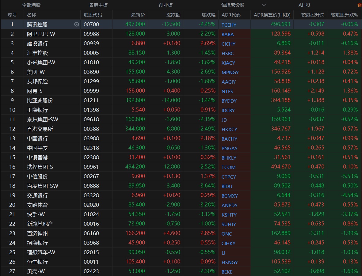 智通财经APP获悉,周一美股三大股指涨跌不一,恒生指数ADR上涨,按比例计算,收报23195.07点,较香港收市上涨75.49点或0.33%。