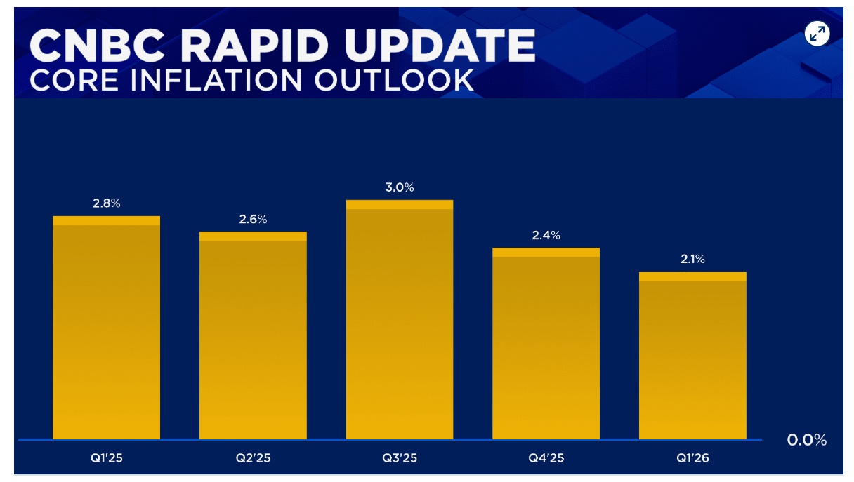 持续的通胀将使美联储应对经济增长放缓的能力变得复杂。预计本季度核心个人消费支出 (PCE) 增长率为 2.8%,下个季度将升至 3%,并大致保持在这一水平,直到一年后降至 2.6%。