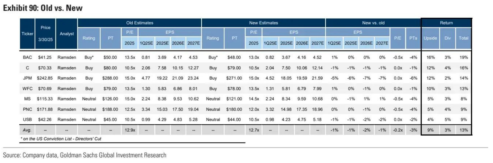 高盛表示,在美股银行股2025年第一季度财报季即将到来之际,预计投资者将关注三个关键主题: