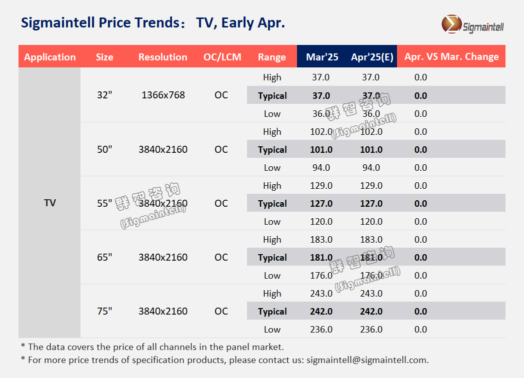 50",品牌需求韧性较弱,预计4月面板价格维持平稳。