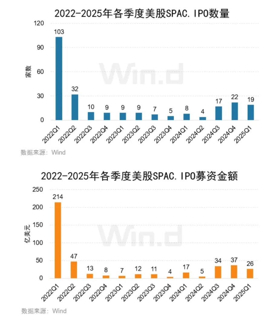 2025年一季度SPAC共上市19家,较去年同期增加11家;募集资金为26亿美元,较去年同期上升57.45%。