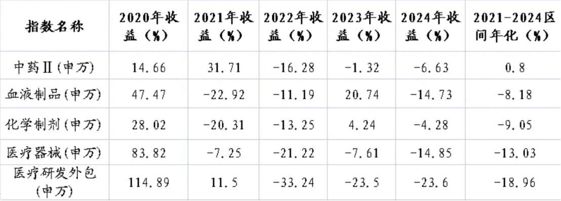 受外部不确定因素影响,2024年国内医药板块整体回撤明显。其中医院、医疗研发外包等板块整体跌幅较大,仅中药逆势录得正向年化收益。