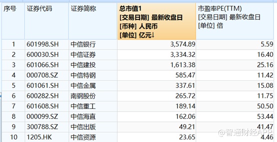 除此之外,中信股份控股的公司亦有多家上市企业,且这些子公司的估值都比中信股份高。除此之外,据wind数据显示,中信股份部分上市控股子公司的市值之和高达10135.44亿元人民币,远高于中信股份当前的市值的2400亿港币。