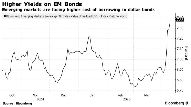新兴市场主权美元债收益率攀升至7.38%,创去年8月以来新高,较五年均值高出80个基点。