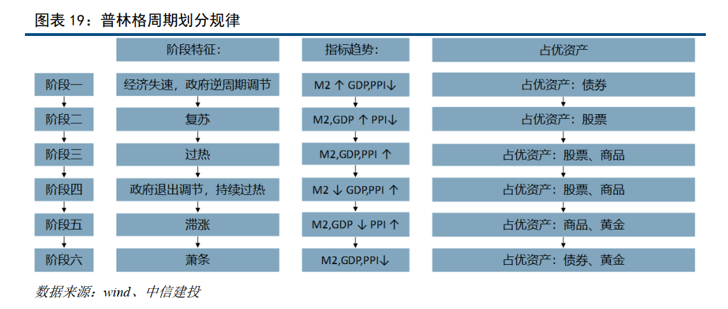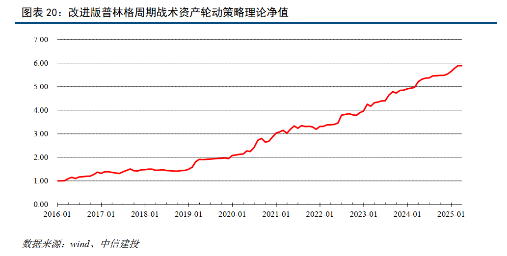 中信建投判断当前中国处于先行指标同步指标回升、滞后指标回落的状态。中信建投认为2025Q1同步指标将会迎来拐点,但是节奏受制于关税大棒可能有所反复,短期中信建投将同步指标观点修正为下行,等待后续更多经济数据验证。根据中信建投改进的普林格周期理论构建的策略,过去7年年化收益21.36%,夏普比率1.82,最大回撤-6.38%。当前中国经济正处于该周期体系的第一阶段,模型建议配置是债券和黄金。