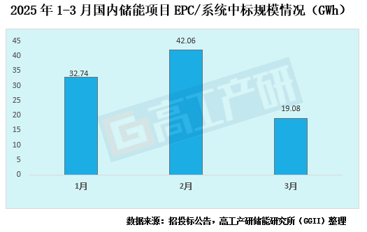 智通财经APP获悉,依据GGII发布的《高工储能行业数据库》不完全统计,2025年3月国内共有39个储能项目EPC/系统公布中标结果,由于多个大型集采项目集中在前2个月落地,导致本月中标规模较上月下降55%,1-3月中标容量规模累计达93.88GWh。