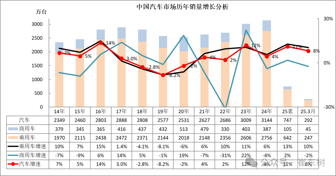 近几年乘商分化特征明显,随着房地产回归合理的低位,商用车走弱,乘用车消费改善。2025年市场受政策因素推动,3月乘用车增速相对较好,商用车一般,春节后市场才恢复,由于需求不旺,3月走势相对偏弱。