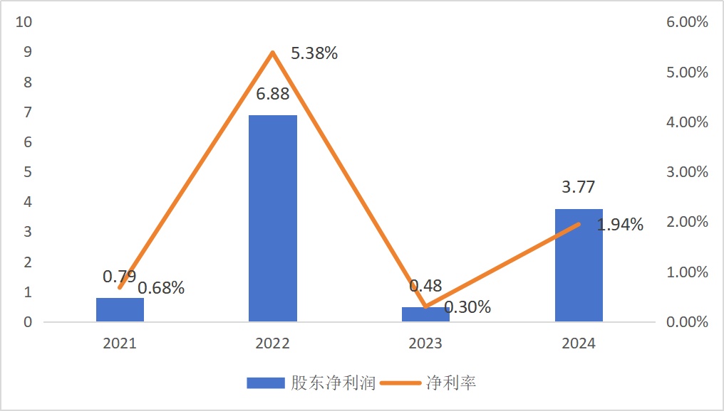 而2024年财报显示,该公司营业收入194.02亿元,同比增加20.17%,归属于股东净利润3.77亿元,同比增长6.85倍,其拟每10股派发现金红利0.70元,分红比例为30.72%。