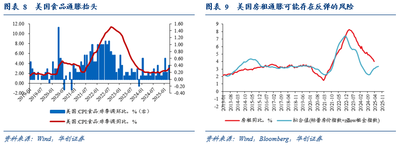 租金通胀存在反弹的风险。3月份,CPI租金增速回升,主要住所租金环比从0.28%升至0.33%,业主等价租金环比从0.28%升至0.4%,去年的环比均值则分别为0.35%和0.39%。因其在CPI中的权重最大(1/3),租金增速的粘性也意味着核心通胀的粘性。美国房价大约领先租金同比一年半,市场化租金大约领先其半年,从房价和市场化租金走势来看,今年后期租金同比可能存在一定的反弹风险。