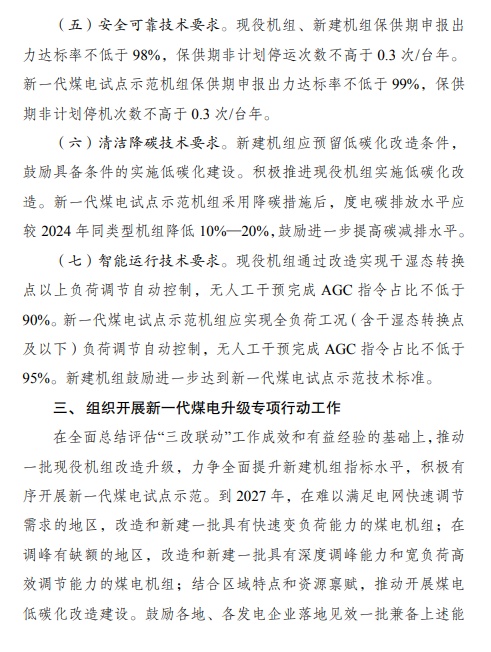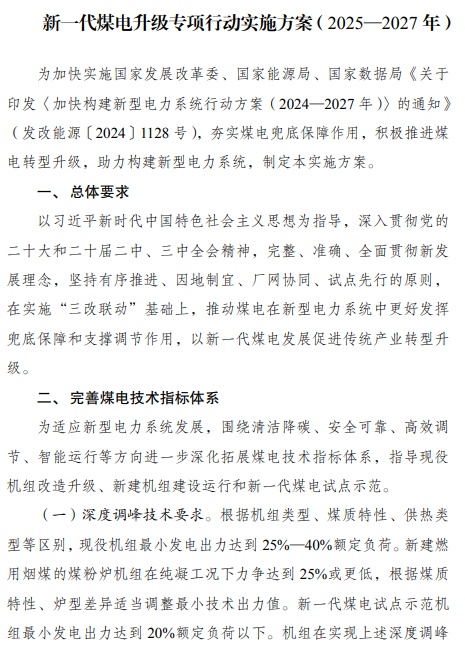 方案提到,到2027年,在难以满足电网快速调节需求的地区,改造和新建一批具有快速变负荷能力的煤电机组;在调峰有缺额的地区,改造和新建一批具有深度调峰能力和宽负荷高效调节能力的煤电机组;结合区域特点和资源禀赋,推动开展煤电低碳化改造建设。鼓励各地、各发电企业落地见效一批兼备上述能力的煤电机组。