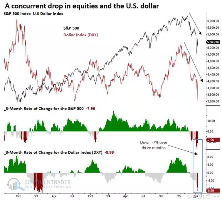 Christians 指出:“标普500与美元在三个月内同步下行,是一种罕见且值得注意的现象。通常在股市回调时,美元作为避险资产会走强。”