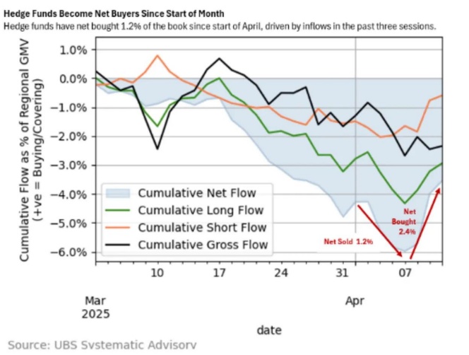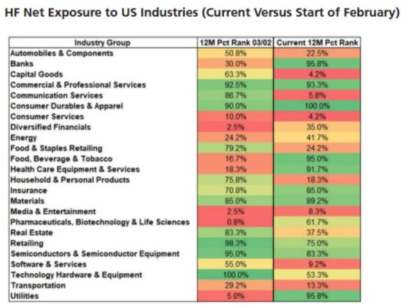 附录:4月初以来对冲基金转向防御,买入美国耐用消费品(截至4月11日的数据)