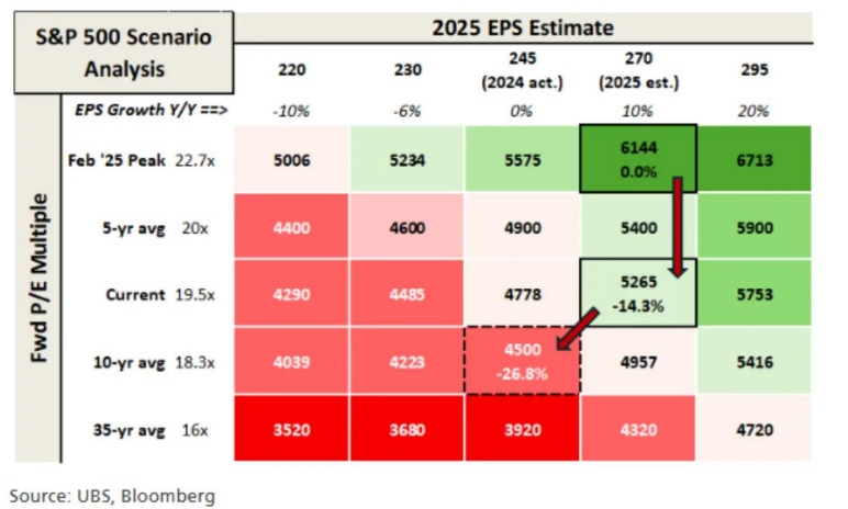 与该行交流过的人都没有真正明确的市场目标。该行所见到的最出色的研究是亚伦・诺德维克在不同盈利背景下对多种情景的分析(见文末图表)。在关税影响、影响时机、信心冲击等方面几乎毫无头绪的情况下,想要对年底标普500指数(SPX)有一个可靠的预测根本不可能。