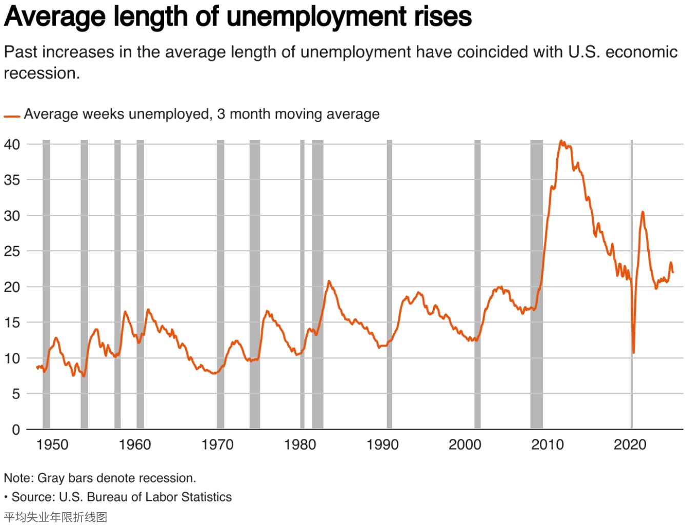 与此同时,失业者中位待业时间从2022年中的约8周拉长至目前的逾10周,已逼近2007-2009年金融危机期间10周的峰值水平。