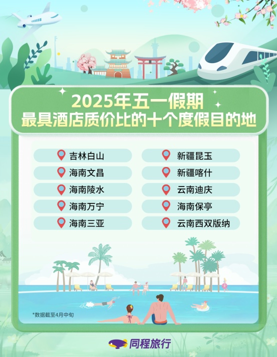 随着旅游基础设施的不断优化,近年来,县域旅游市场的热度持续提升,趁假期去找个酒店躺平去班味,更是受到不少年轻消费者的热捧。结合同程旅行的酒店价格走势和预订热度看,今年五一期间,吉林白山,海南的文昌、陵水、万宁和保亭,新疆的昆玉和喀什,云南的迪庆等,整体受欢迎程度较高。