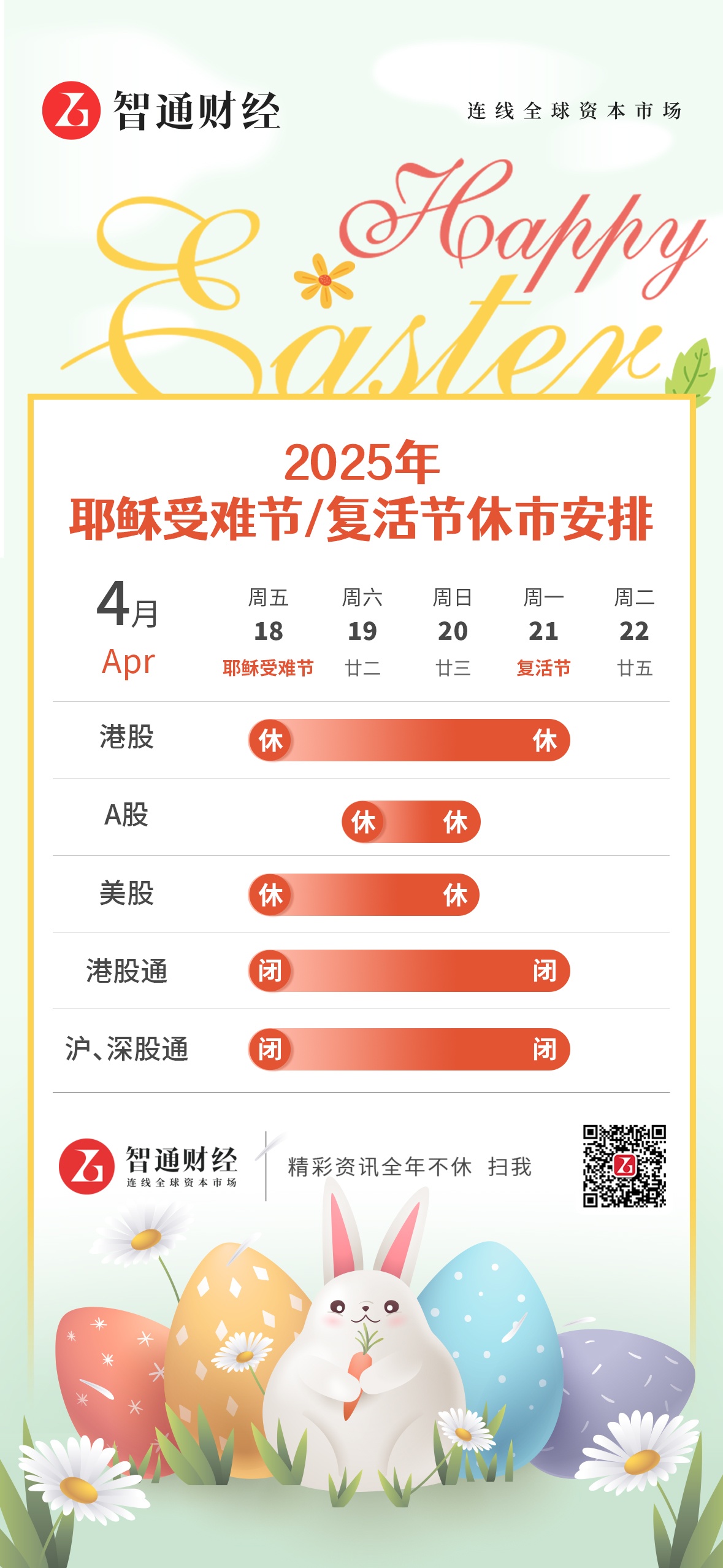 智通财经APP获悉,4月18日(星期五)至4月21日(星期一)为耶稣受难节及复活节假期,港股休市4天,4月22日(星期二)恢复正常交易。