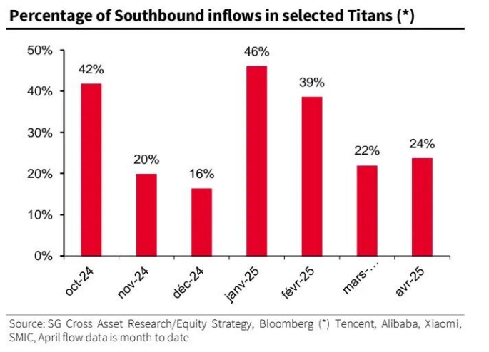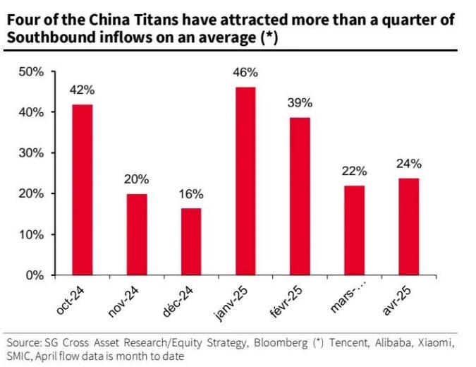 图表 2:平均而言,四家中国巨头吸引了超过四分之一的南向资金流入