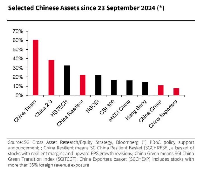 图表 3:2024 年 9 月 23 日以来部分中国资产表现