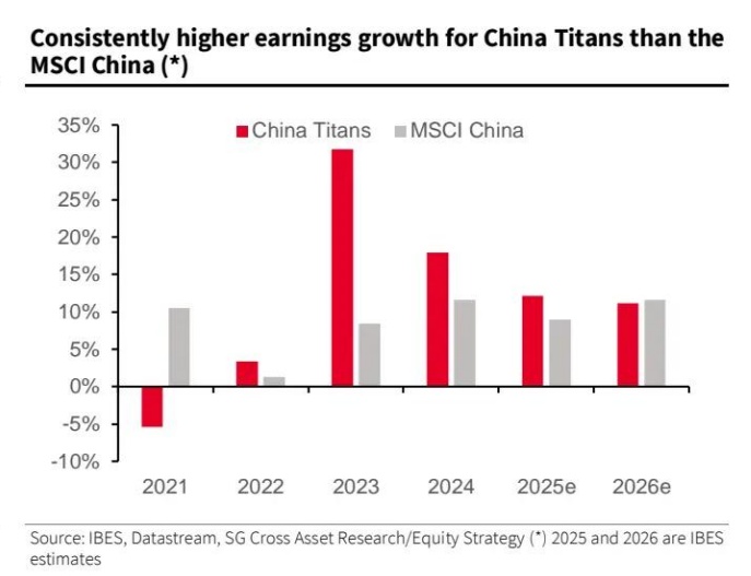 图表 10:中国巨头的盈利增长一直高于明晟中国指数