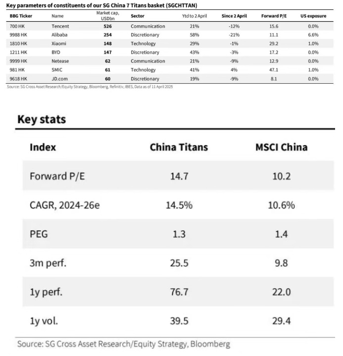 据了解,法国兴业银行2月底将中国7种主力股票称为“七巨头”,这7巨头分别为腾讯控股(00700)、阿里巴巴集团(09988)、小米集团-W(01810)、比亚迪股份(01211)、网易(09999)、中芯国际(00981)、京东集团-SW(09618)。