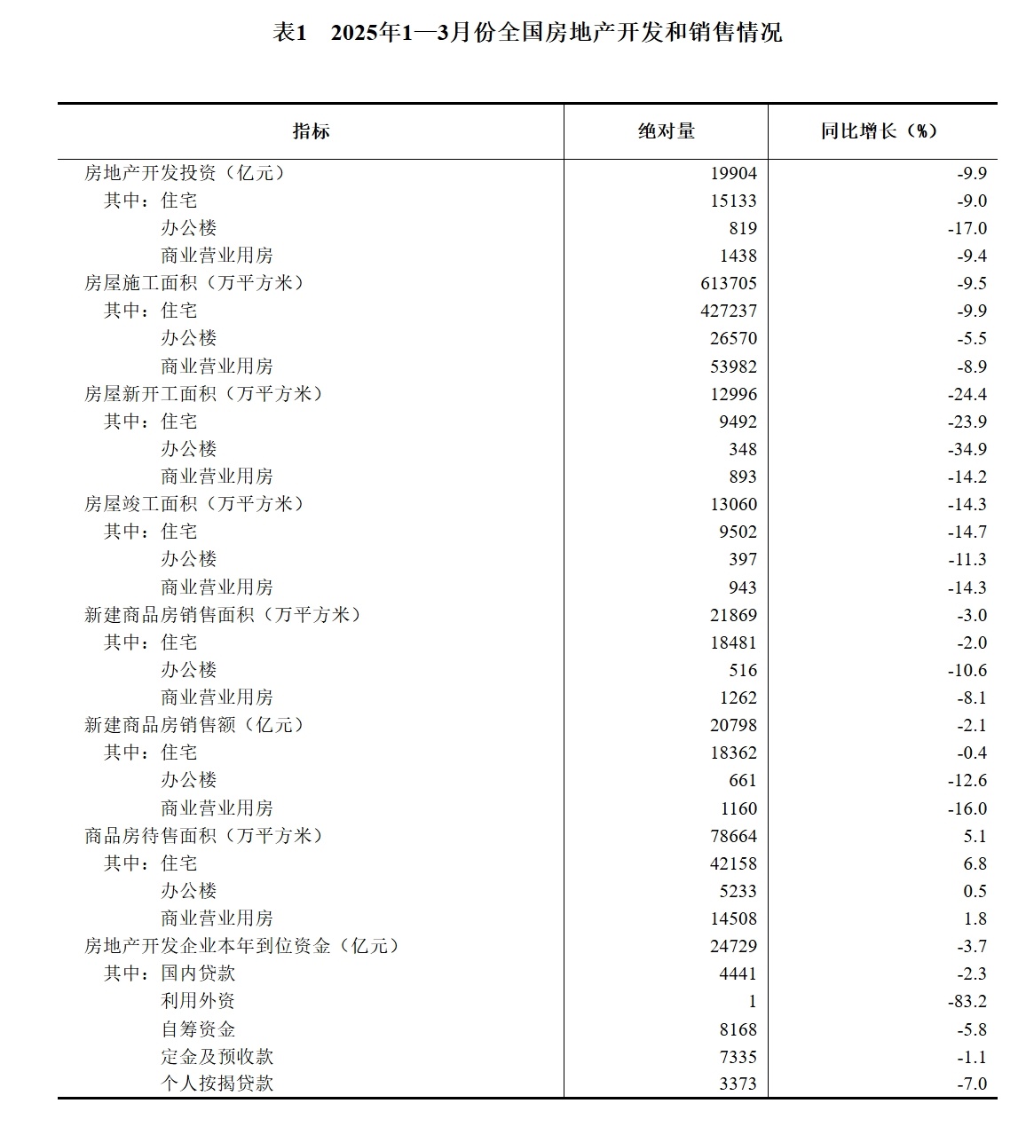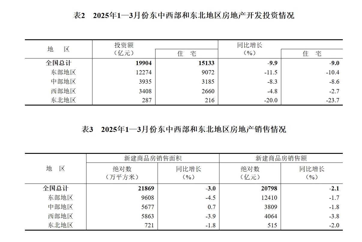 2025年1—3月份全国房地产市场基本情况