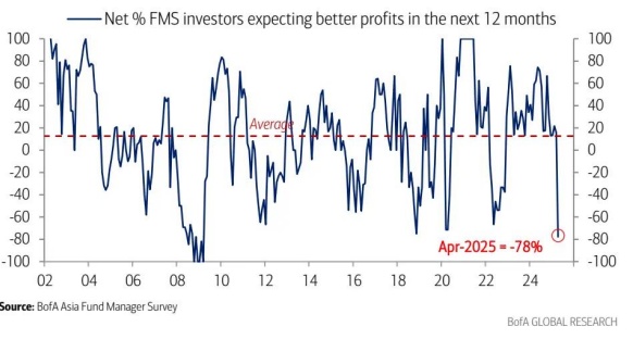 78%的受访者净预期未来12个月企业盈利恶化,接近2008年金融危机时期。