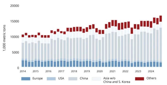 其他: 巴西, 印度尼西亚, 俄罗斯, 南非, 韩国 资料来源:世界不锈钢协会