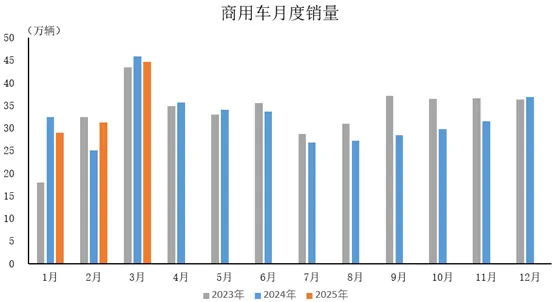 智通财经APP获悉,据中国汽车工业协会分析,2025年3月,在商用车主要品种中,与上月相比,客车和货车产销均呈快速增长;与上年同期相比,客车产量小幅增长、销量微降,货车产销均呈小幅下降。3月,商用车产销分别完成43.1万辆和44.7万辆,环比分别增长35.8%和42.8%,同比分别下降1.4%和2.4%。1-3月,商用车产销分别完成104.8万辆和105.1万辆,同比分别增长5.1%和1.8%。