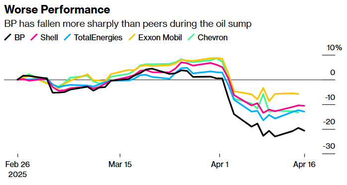 在对战略调整反应冷淡之后,英国石油公司首席执行官Auchincloss表示,他相信“数周甚至数月”的稳定执行将赢得投资者的支持。然而,随着特朗普的关税扰乱全球经济,OPEC+的内部分歧导致了石油供应增加,华尔街大幅下调油价预测,时间可能不会像他所希望的那样成为其盟友。