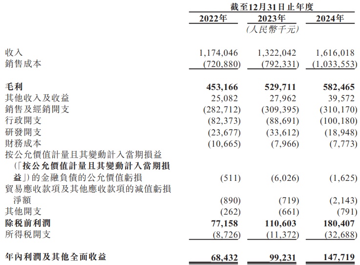 财务方面,于2022年、2023年及2024年,溜溜果园收入分别约为11.74亿元、13.22亿元、16.16亿元人民币;同期,年内利润及其他全面收益约为6843.2万元、9923.1万元、1.48亿元人民币。