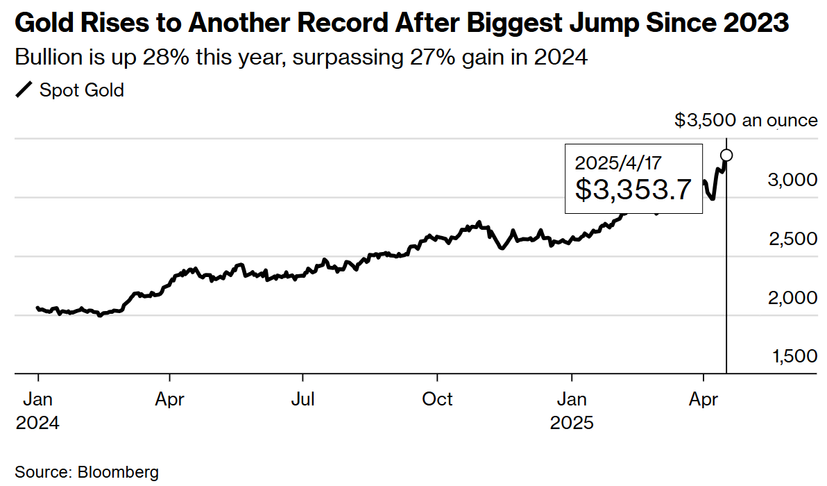 由于不断升级的贸易战引发了人们对可能出现的全球经济衰退的担忧,黄金今年上涨了近28%,超过了2024年27%的涨幅。与此同时,特朗普政府正准备向各国施压,要求它们在美国关税谈判中限制与中国的贸易。