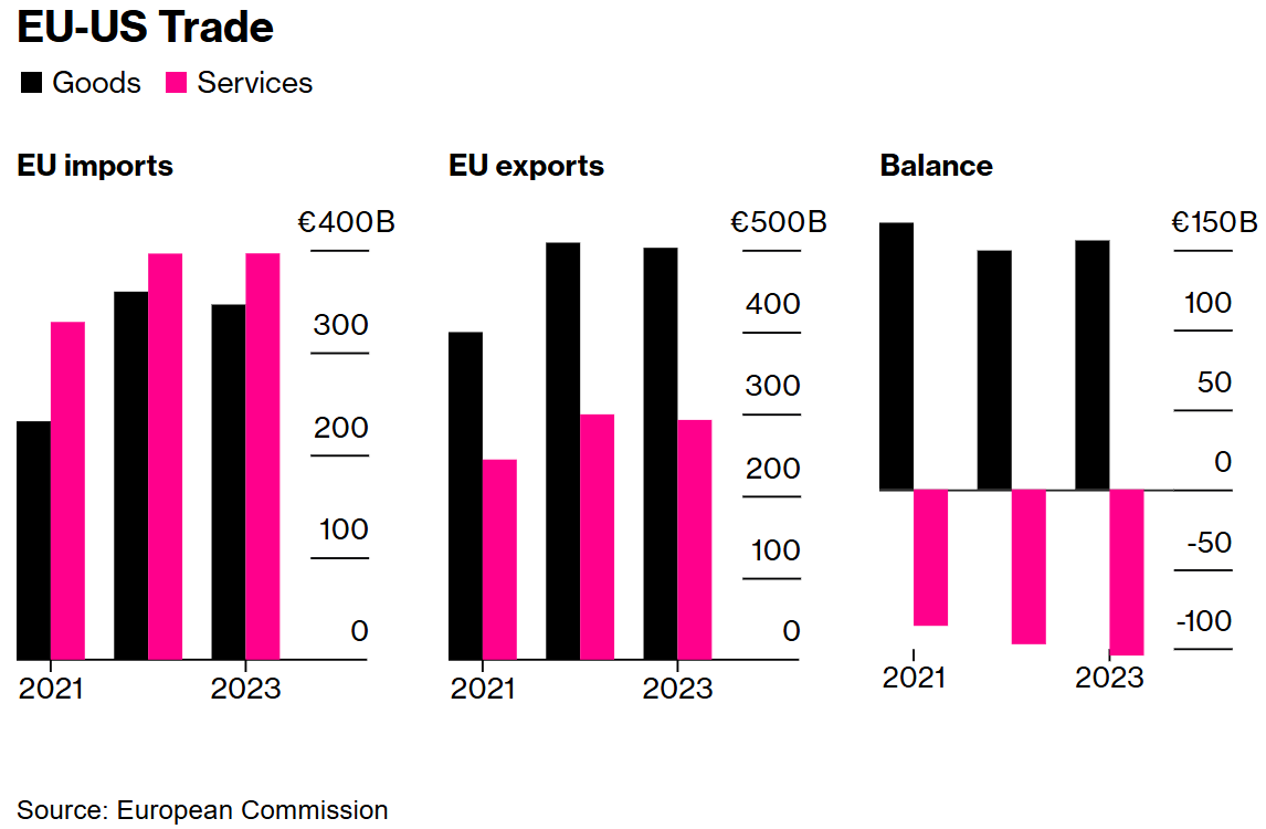 欧盟已着手制定预案,若90天谈判期结束仍无法达成协议,将采取更多反制措施。欧盟委员会主席乌尔苏拉·冯德莱恩暗示,另一选项是瞄准美国科技公司的数字广告收入。