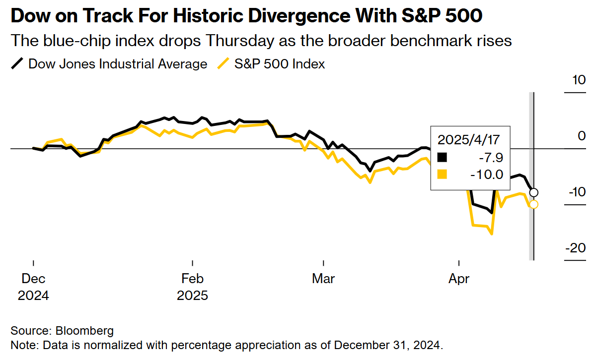 智通财经APP获悉,周四,道指下跌1.2%,而标普500指数同时上涨高达0.6%。这种情况极为罕见——这一历史性背离的“罪魁祸首”是医保巨头联合健康(UNH.US)的股价暴跌。