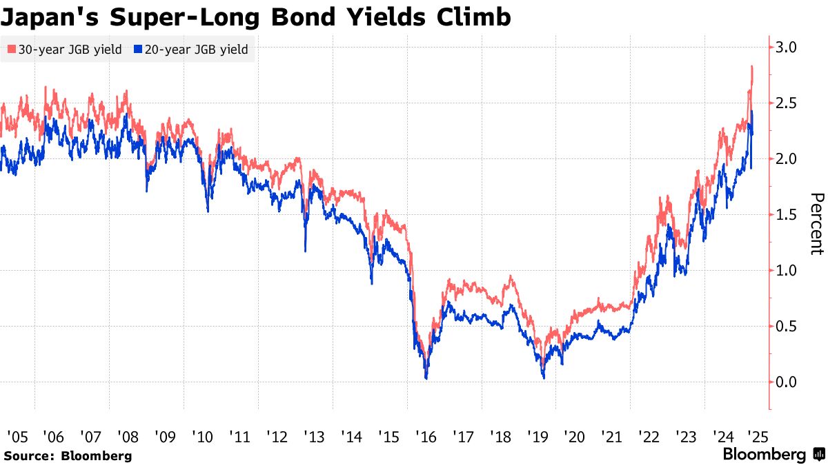 这种担忧导致的抛售将日本20年期国债收益率推至2004年以来的最高水平。不过,随着日本央行行长植田和男提出对美国关税措施的政策回应后,日本超长期国债随后出现反弹。