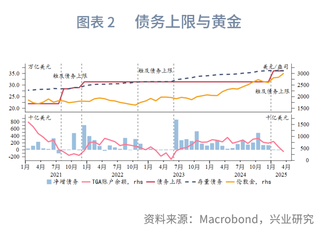 智通财经APP获悉,兴业研究发布研究报告指出,黄金上涨的核心逻辑——美元信用问题目前仍在延续,甚至有进一步增强的趋势。4月初黄金5-8%的快速调整已经发生,没有进一步流动性冲击的情况下,出现大幅调整的概率仍然较低。黄金“可遇不可求”买点仍将是常态。中期无论是交易衰退还是交易滞胀都利好黄金。同时考虑到今年6月~8月美国财政部资金将耗尽,美国国会可能在此之前提高债务上限。因此今年第二、三季度金价中枢可能随美国政府债务扩张再度上移。