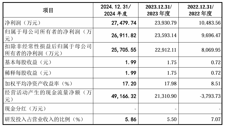 财务方面,于2024年度、2023年度、2022年度,瑞立科密实现营业收入分别约为19.77亿元、17.60亿元、13.26亿元;同期,净利润分别约为2.75亿元、2.39亿元、1.05亿元。