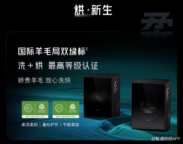 智通财经观察到,国际羊毛局的认证标准极为严苛,根据羊毛衣物洗/烘后的缩水、洗净、外观、耗水耗电等性能指标分为黑标、蓝标、绿标三个水平。绿标认证代表着最高的洗烘标准,不仅能够保证衣物保色护型、柔软亲肤,还兼顾了节能省电、低碳环保。