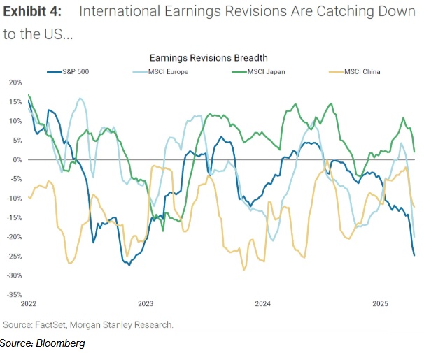 由于担忧特朗普总统提议的关税政策将损害经济并推高通胀,美国股市今年持续下挫。当前财报季未能提振市场情绪,投资者正加速寻找海外机会。今年以来,剔除美国的MSCI发达国家指数上涨超6%,而标普500指数下跌10%。