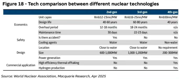 由于 2011 年 3 月的福岛核事故,中国的核电发电量在过去十年间增长停滞。截至 2024 年 12 月,核电装机容量仅占总装机容量的 2%,发电量占比为 5%。但该行认为,情况正在发生变化,尤其是核电政策方面。