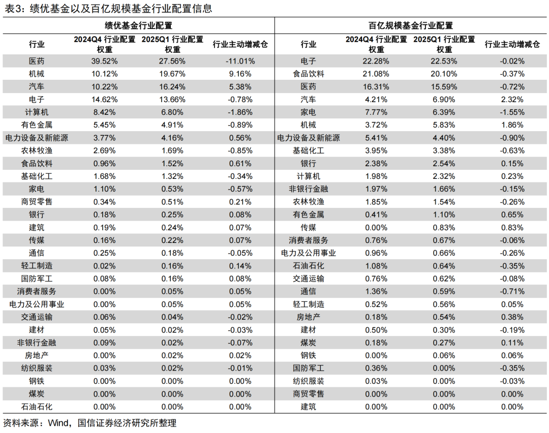 绩优基金自上一报告期到2025年一季度主动增仓最多的行业为机械,主动增仓了9.16%,而主动减仓最多的行业为医药行业,主动减仓了11.01%。