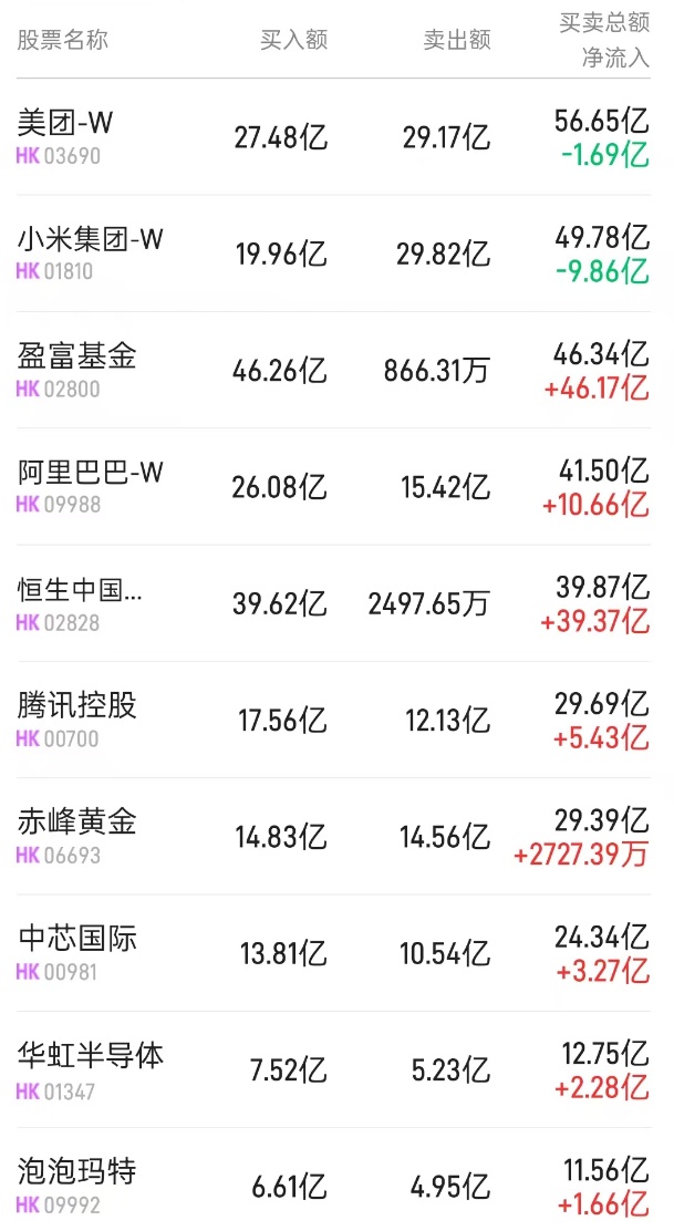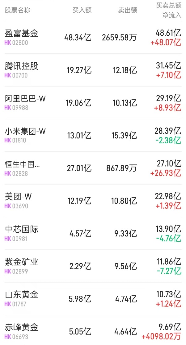 北水净买入最多的个股是盈富基金(02800)、恒生中国企业(02828)、阿里巴巴-W(09988)。北水净卖出最多的个股是小米集团-W(01810)、紫金矿业(02899)、中芯国际(00981)。