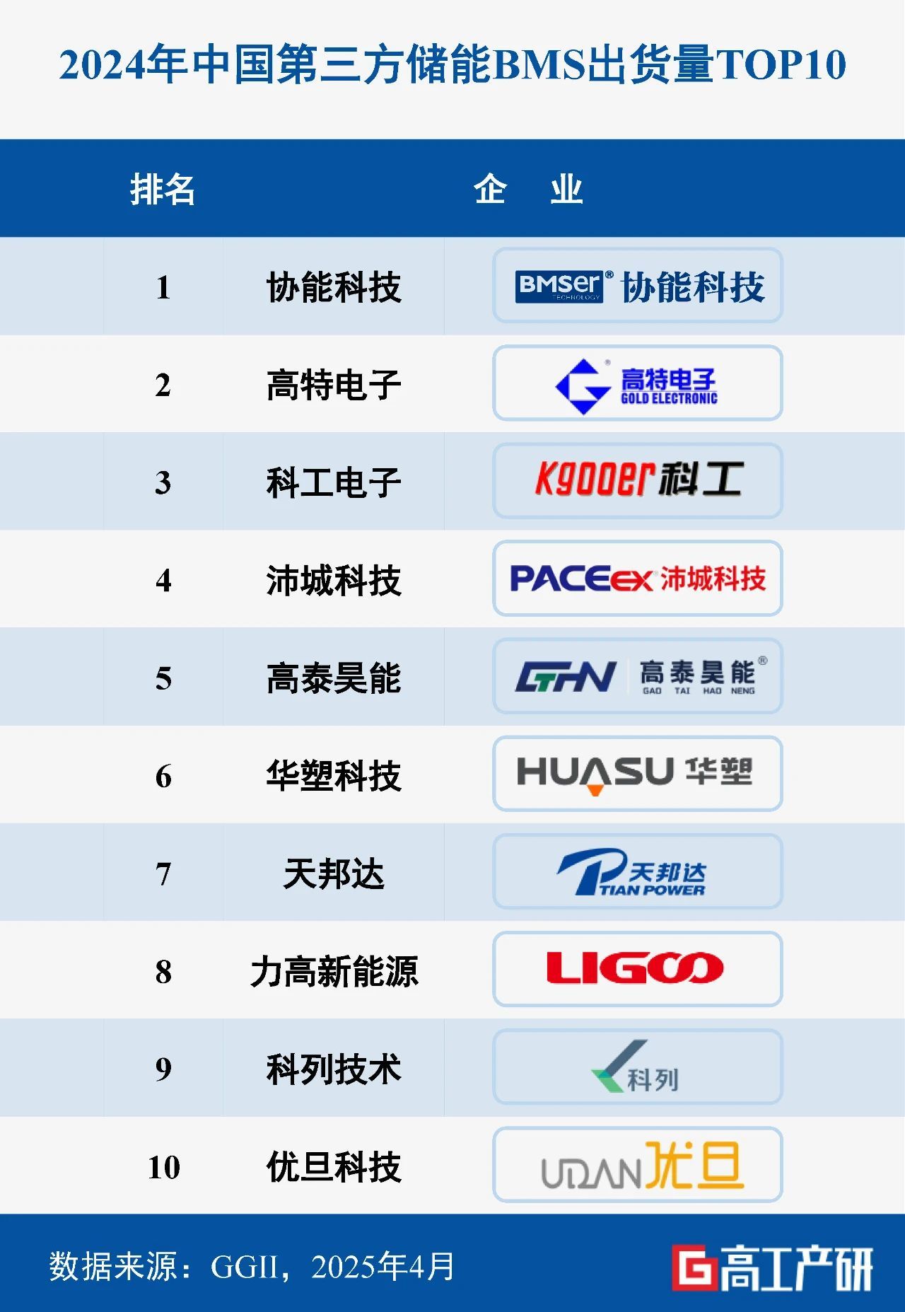 GGII根据市场调研数据,正式发布《2024年中国第三方储能BMS出货量TOP10》。