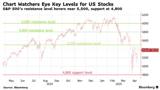 对杰富瑞技术分析师丹尼尔·基尔舍而言,这种剧烈波动使得通过图表研判关键点位变得尤为重要。在他看来,当前需要紧盯的关键点位是5500——标普500指数必须突破该水平,才能收复2月历史高点以来19%跌幅的一半。