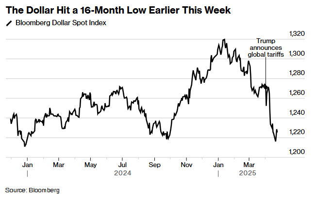 通常情况下,在市场动荡时期,美元作为避险资产会走强,但自特朗普宣布大规模加征所谓“对等关税”以来,美元却对主要货币出现大幅贬值。自4月初以来,英镑兑美元上涨了3%,欧元兑美元则上涨了5%。即便白宫近几日采取了更为缓和的立场,也未能显著帮助美元收复失地。