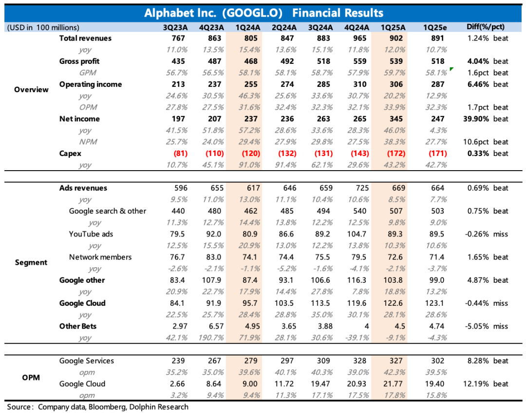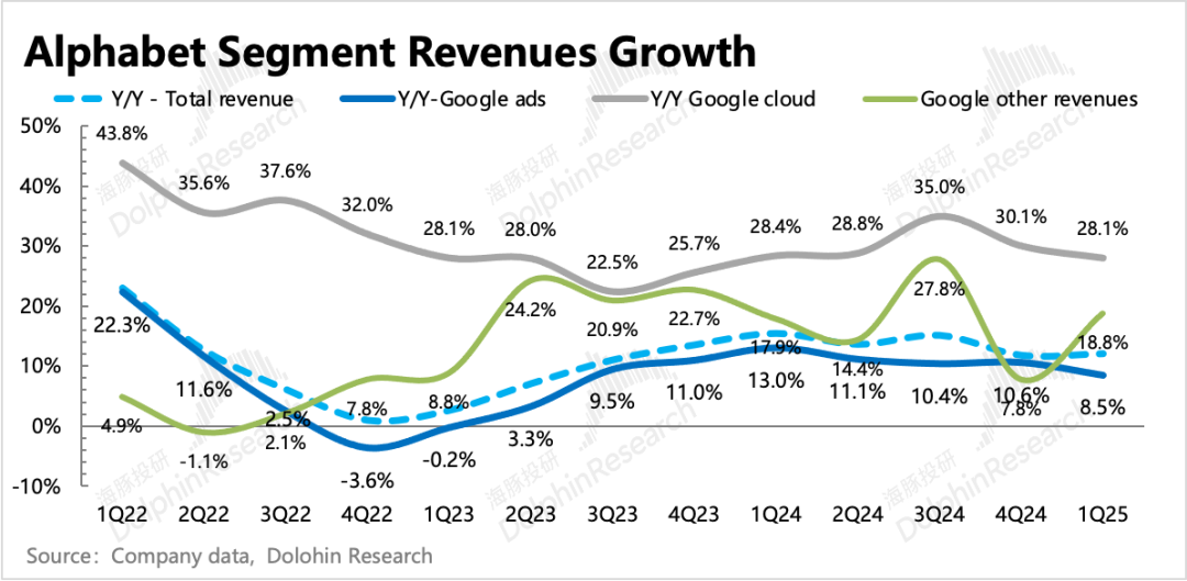 广告之外,AI推动下的Google 云服务继续高增长28%,市场预期较充分,不算惊喜。
