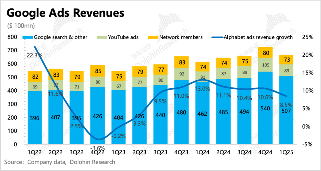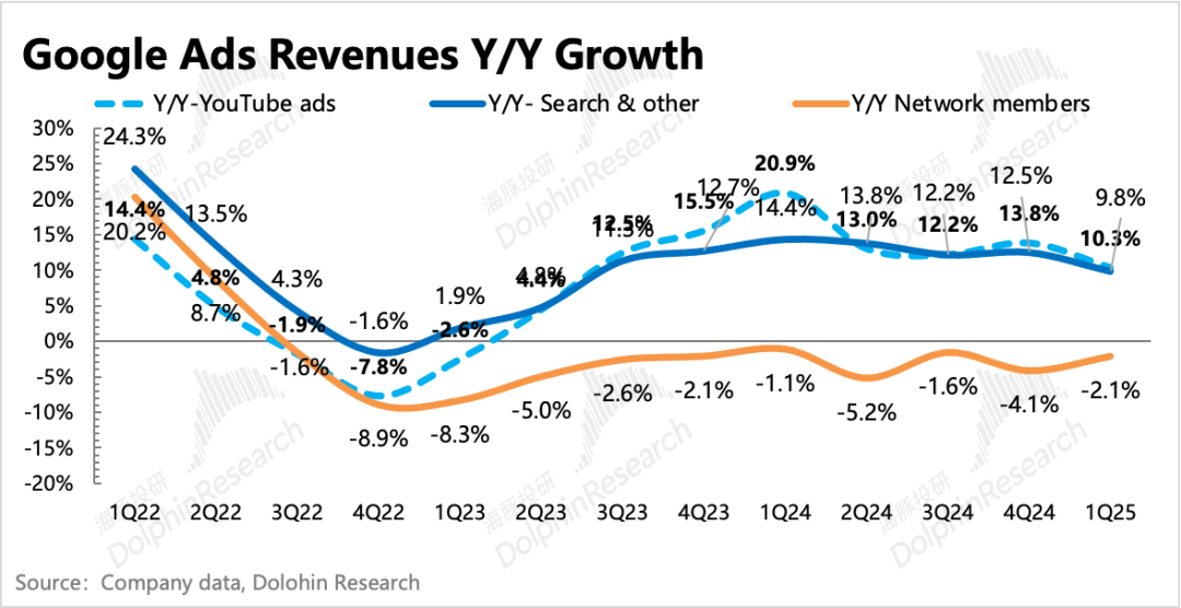 当然Q1的情况只体现商家对本土消费边际转弱的一些预算调整,并不包含对关税尤其是超预期的关税对抗下,商家的投放意愿降温。虽然海豚君仍然认可搜索广告在这个过程中会保持相对强势,但作为这么大体量的广告公司而言,尤其是零售广告占比不低,Beta的影响力还是更大一些。