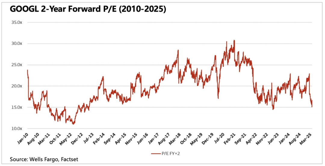 唯一确定的就是“不确定”。按照部分机构在近一周更新的预期来看,市场对谷歌今年的业绩预期调整3%-5%并不算多,但估值已经“暂时性”地锚定在历史上的底部承压点——2012年、2022年。
