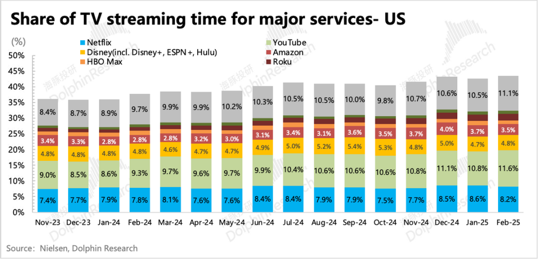 不过YouTube流量大,且有Shorts,因此也能对冲掉一些影响。再加上YouTube 在CTV上的收视时长份额一直不错,用户需求高,要么转化为会员付费,要么就带来更高的广告收入。